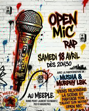 Avis aux amateurs de kickage et aux passionnés de plume : le samedi 18 avril, les murs du Meeple vont vibrer au rythme du hip-hop !